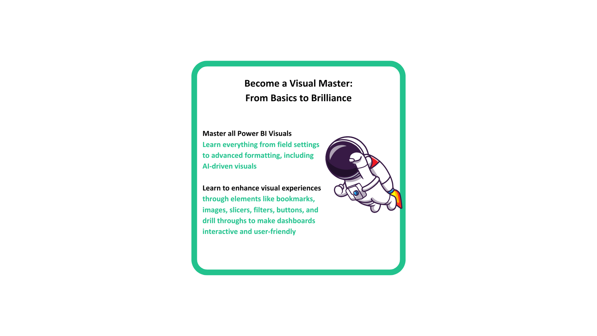 Our course guides you step-by-step, teaching both Power BI Skills and Data Visualization Principles to help your dashboards stand out. Enroll today to start your journey to Power BI expertise!